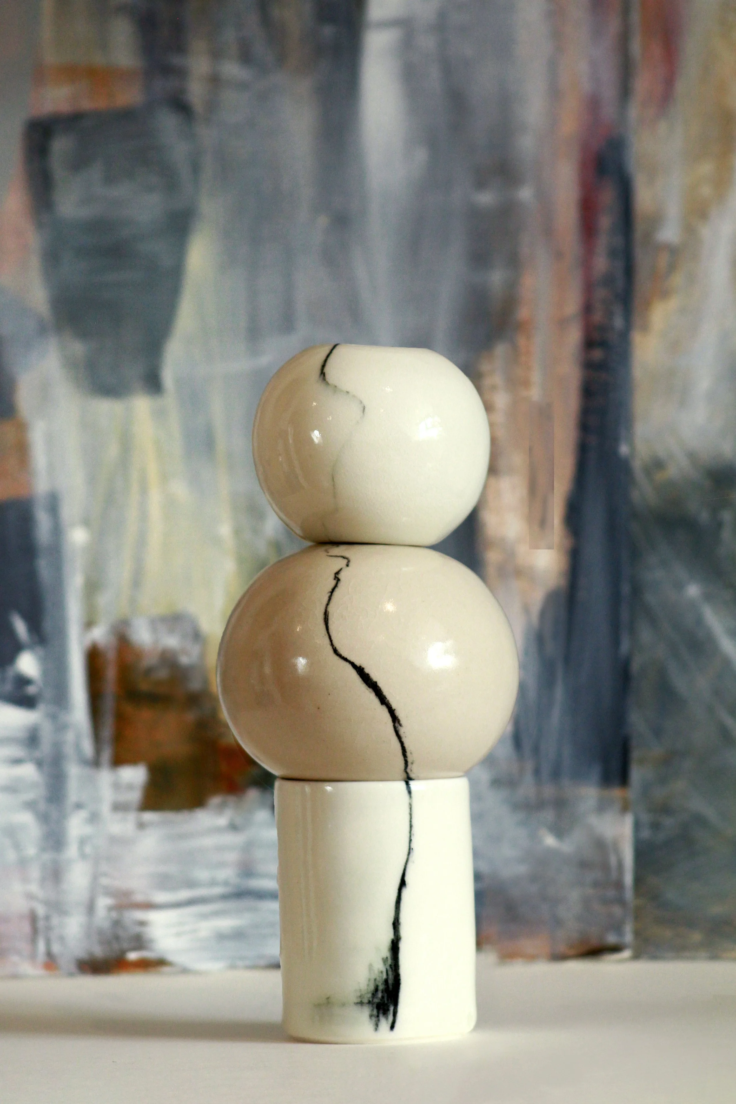 Like many sculptors and ceramicists, I love being muddy and having earth in my hands. For me, painting large-scale artworks and creating with clay are fundamentally similar because they both demand physicality. I engage my whole body - sometimes with a great effort - in order to make gestural marks with paint on a canvas, or to mould clay. Both demand movement; both are highly tactile; both can be intentional or spontaneous; responsive or proactive; gentle or violent.